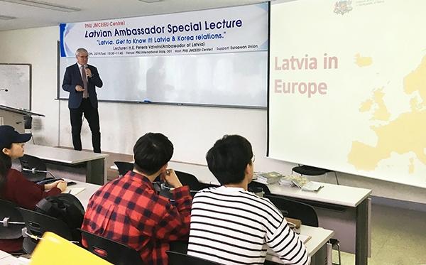 부산대 EU센터의 '5월 EU MONTH' 프로그램 중 하나로 마련된 이번 특강은 '라트비아와 한국의 관계'를 주제로 진행됐다.
