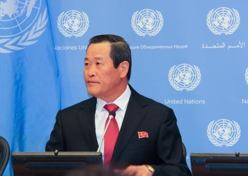 김성 유엔주재 북한 대사가 21일(현지시간) 미국 뉴욕 유엔본부에서 기자회견을 하고 있다. 김 대사는 미국 정부의 북한 화물선 ‘와이즈 어니스트’(Wise Honest)호의 압류에 대해 “불법 무도한 행위”라면서 즉각 반환을 요구했다. 연합뉴스‘하노이 노딜’ 이후 지속되고 있는 북·미의 신경전이 최근 미국의 북한 선박 압류 문제로 한층 가열되는 양상이다.