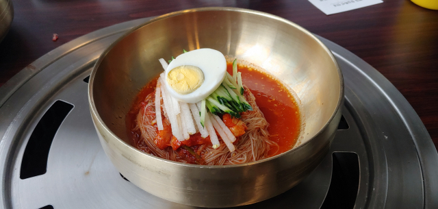 냉면을 맛보니 이런 자신감이 이해됐다. 단순히 고기를 먹은 뒤 느끼함을 달래기 위한 냉면이 아니었다. 주방장도 실제로 유명 냉면집 출신이고, 자가제면부터 전 요리과정이 전문점과 동일하다고 했다. 물냉면은 육수가 과하지 않은 달짝지근함이, 비빔냉면은 입에 붙는 감칠맛이 인상적이었다.