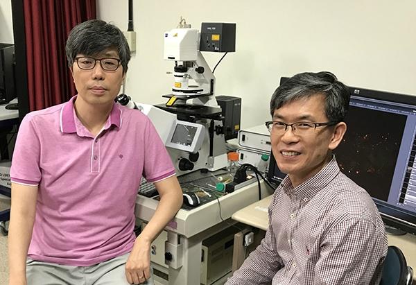 왼쪽부터 고형종, 윤진호 동아대 의과대학 말초신경병증센터(MRC) 교수. 동아대학교 제공.동아대학교(총장 한석정)는 의과대학 말초신경병증센터(MRC) 소속 고형종ㆍ윤진호 교수 공동연구팀이 파킨슨병 등 다양한 인체질환 원인으로 지목되고 있는 생체조직의 '미토파지 활성변화' 연구를 위한 '초파리 모델' 개발에 성공했다고 4일 밝혔다.