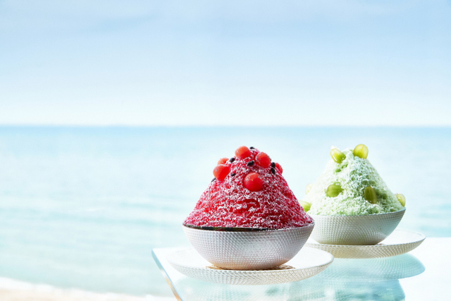 부산웨스틴조선호텔은 다음 달 31일까지 로비층에 위치한 파노라마 라운지에서 수박 빙수와 청포도 빙수(사진)를 선보인다. 가격은 각 3만 9000원으로, 정오부터 오후 9시까지 판매한다.