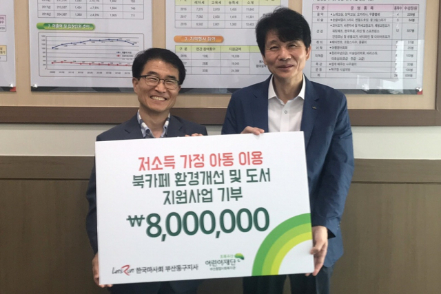 한국마사회 부산동구지사(지사장 박정진)는 지난 12일 북카페 환경개선·도서구입 후원금 800만 원을 초록우산어린이재단 부산종합사회복지관(관장 도기옥)에 전달했다.