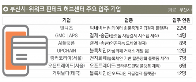 부산시는 글로벌 공유 오피스기업인 위워크와 핀테크 기업들에 업무공간을 제공해 기업들을 집적하는 동시에, 위워크의 최대 강점인 기업 성장프로그램과 글로벌 네트워크를 활용해 해외 판로 개척에 적극적으로 나설 계획이다. 이미 1단계로 부산지역 기업 21개 등 25개사의 입점을 확정했고 이달 초부터 본격적으로 서울에서 유치 활동에 나섰는데, 수도권 기업들의 반응이 예상보다 훨씬 뜨거워 대규모 입주 설명회까지 마련한 것이다.