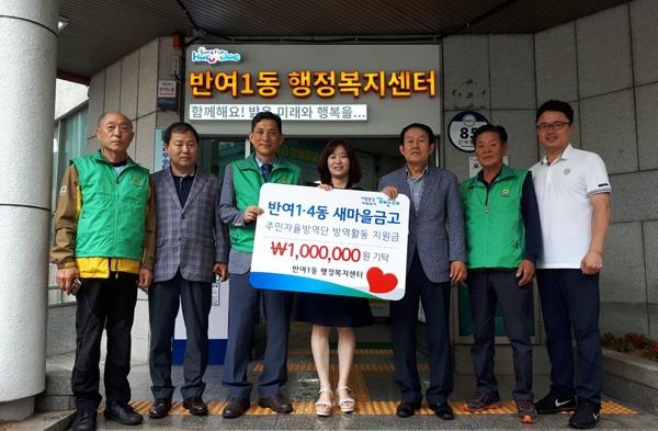 해운대구 반여1ㆍ4동 새마을금고(이사장 이영기)는 19일 반여1동 자율방역단(단장 새마을지도자협의회장 최주식)의 방역소독활동 지원금 100만 원을 반여1동 행정복지센터(동장 김서진)에 기탁했다.