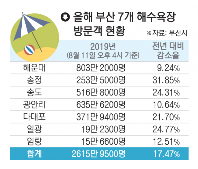부산 해수욕장 울상 올해 방문객 수 ‘뚝’