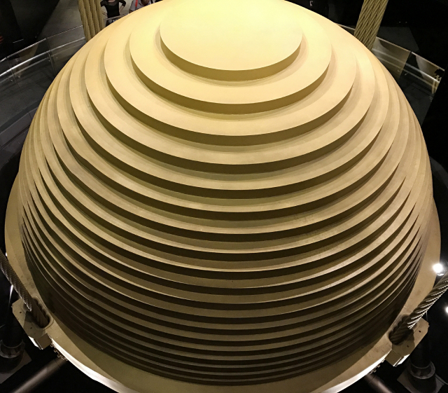 건물 움직임을 흡수하는 추가 설치된 타이완의 ‘타이베이 101’. 부산일보DB
