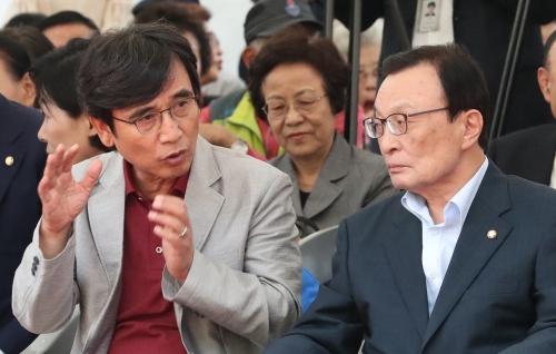 4일 서울 종로구 노무현시민센터 건립 부지에서 열린 기공식에서 유시민 노무현재단 이사장과 더불어민주당 이해찬 대표가 이야기하고 있다. 연합뉴스더불어민주당 이해찬 대표가 전날 조국 법무부 장관 후보자 딸의 생활기록부를 유출한 자유한국당 주광덕 의원을 향해 ‘어린아이에 대한 패륜’이라며 강도 높은 비난을 쏟아냈다.