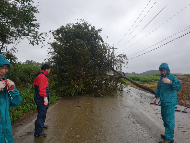 7일 태풍 '링링'이 강타한 전남 해남에서 나무가 강풍에 쓰러져 있다. 연합뉴스