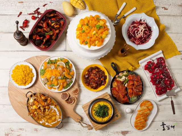 프리미엄 한식뷔페 풀잎채가 가을 신메뉴 '가을에 물들다'(사진)를 새롭게 출시한다고 18일 밝혔다. 풀잎채는 가을에 물들다를 테마로 꽃단풍처럼 곱게 물든 레드 푸드와 옐로우 푸드를 비롯 총 15가지 가을 신메뉴를 풍성하게 선보인다.