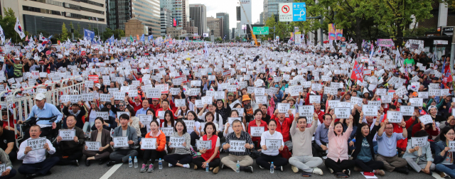 [포토] “조국 퇴진” 함성으로 가득찬 광화문 광장 집회 현장