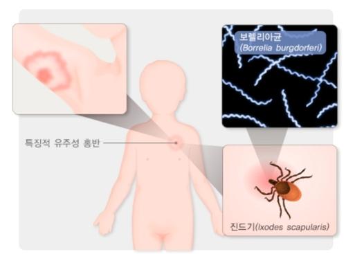 제4군 법정감염병으로 지정된 라임병은 매개종이 참진드기로 참진드기에 물렸을 때 ‘보렐리아균’이 침투해 발병한다. 5월부터 발생해 10월에 비교적 높은 발생률을 기록하고 있다. 또 최근 8년 동안 5월에서 10월 사이 104건이 신고됐는데, 이는 전체 119건의 신고 중 87.4%를 차지하고 있다. 같은 기간 동안 해외유입은 46건(38.7%)이었다. 부산에서는 매년 2건가량 신고되고 있다.