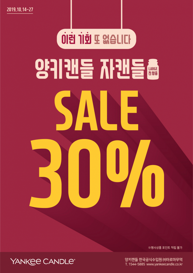 양키캔들, 인기 상품 '자캔들' 30% 파격 세일