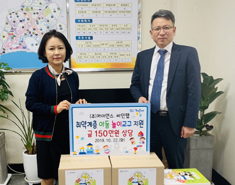 ㈜카이언스-싸인랩, 해운대구 중1동 행정복지센터에 아동 놀이교구 기탁