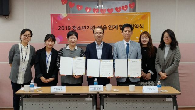 부산광역시청소년활동진흥센터(센터장 김동찬)-중구청소년문화의집(관장 김용숙)-보수동행정복지센터(동장 안영훈)가 지난 17일 청소년기관·마을 연계 협력사업 공동협약을 맺었다(사진).