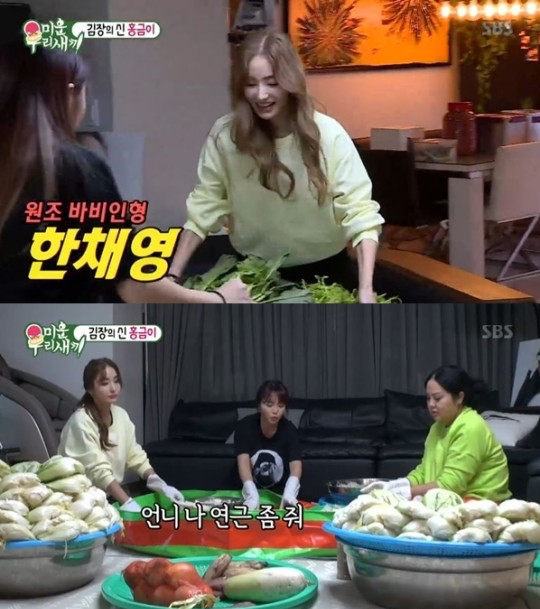 1일 방송된 SBS '미운 우리 새끼'에서는 홍진영-홍선영 자매와 한채영이 김장을 하는 모습이 담겼다.