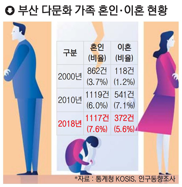 부산여성가족개발원은 2일 이와 같은 내용의 ‘부산지역 다문화 가족 해체 현황과 지원 방안’ 연구보고서(책임연구 김혜정)를 발간했다.