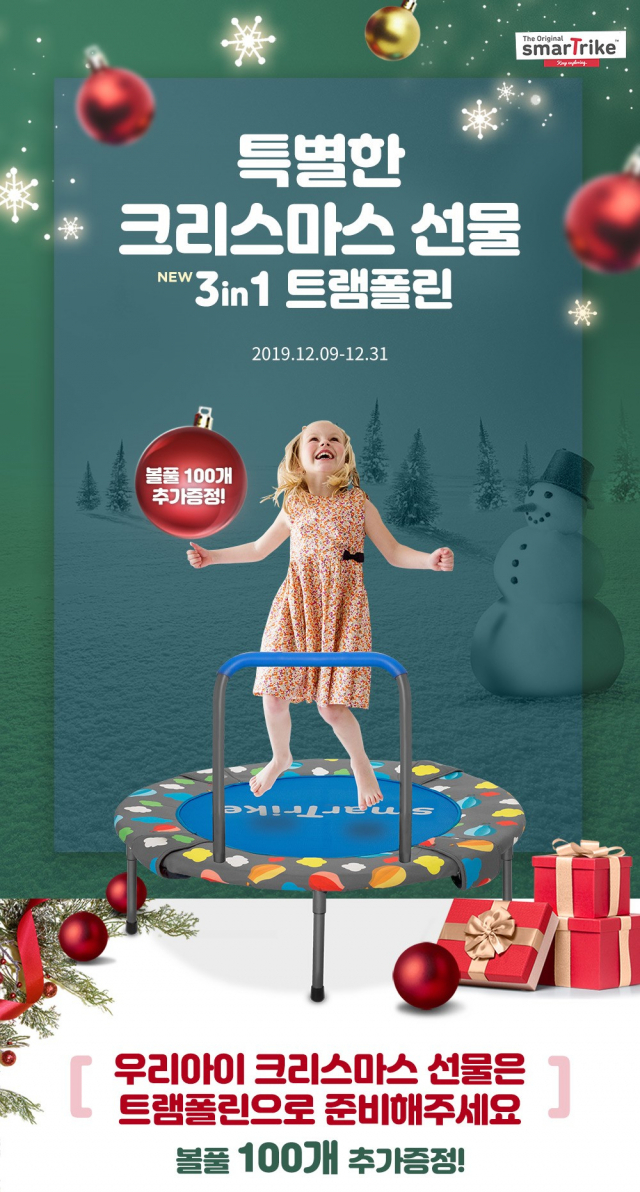 스마트라이크 관계자는 "고민되는 크리스마스 선물, 스마트라이크의 트램폴린을 추천한다"며 "12월 크리스마스 프로모션의 풍성한 볼풀과 함께 아이에게 기억에 남는 크리스마스 선물이 될 것"이라고 전했다.