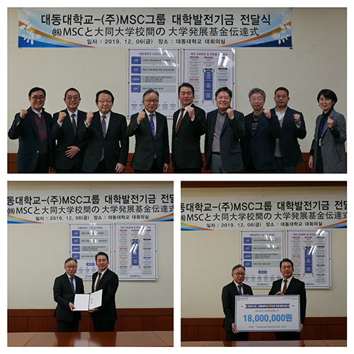 대동대학교(총장 배순철)는 지난 6일 대동대학교 대회의실에서 일본 MSC그룹(회장 北山捲士)과 대학발전기금 전달식을 개최했다.