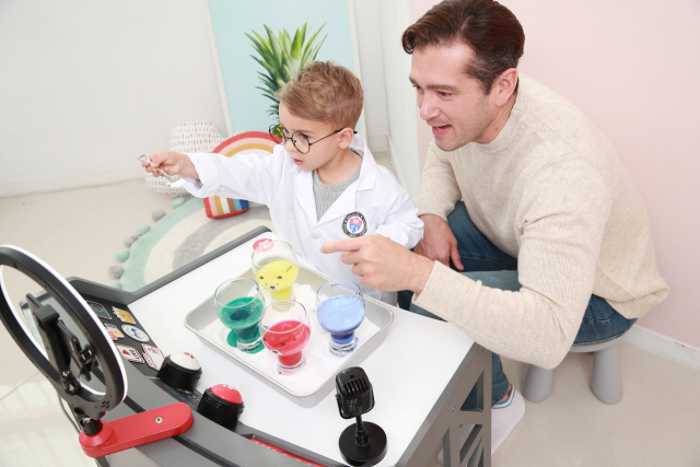 또 크리에이터 스튜디오는 크리에이터를 꿈꾸는 아이들이 실제 방송을 하는 것처럼 실감나고 다양한 역할 놀이를 즐길 수 있는 제품이다. 실제 방송 촬영을 하는 듯한 마이크와 링 라이트, 사운드 버튼 기능으로 리얼한 촬영 놀이를 즐기며 표현력과 어휘력, 창의력을 발달시킬 수 있다. SE0 등급의 친환경 목재를 사용해 안심하고 아이가 사용할 수 있다.