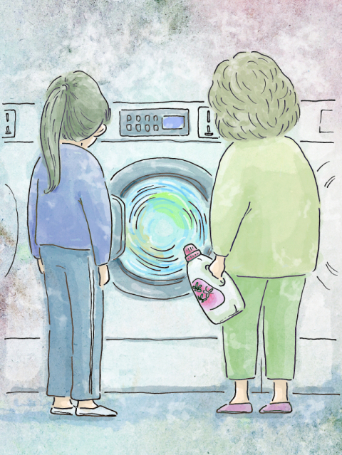 멍하니 앉아 세탁기 안에서 돌아가는 세탁물을 바라본다.