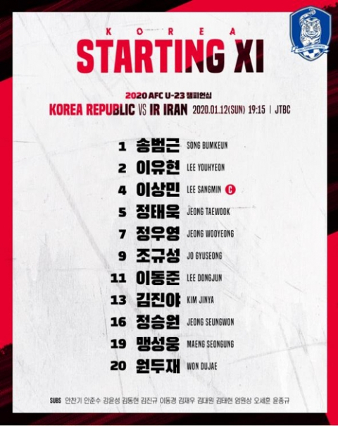[한국-이란] 이동준-조규성-정우영 삼각 편대… 선발 명단 발표