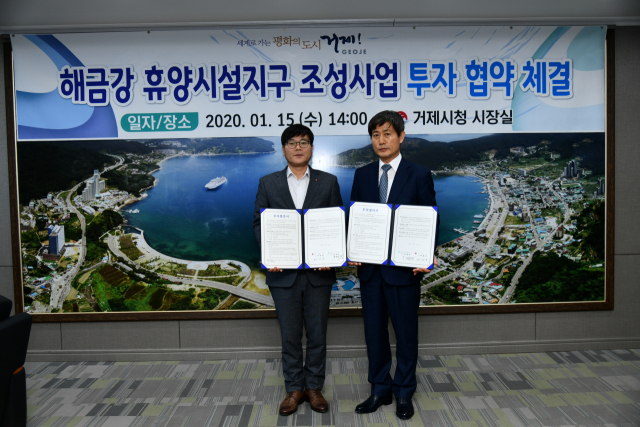 ㈜지원건설(회장 박재복)은 15일 경남 거제시청 시장실에서 거제시청(시장 변광용)과 해금강 휴양시설지구 조성사업 업무협약(MOU)을 체결했다.