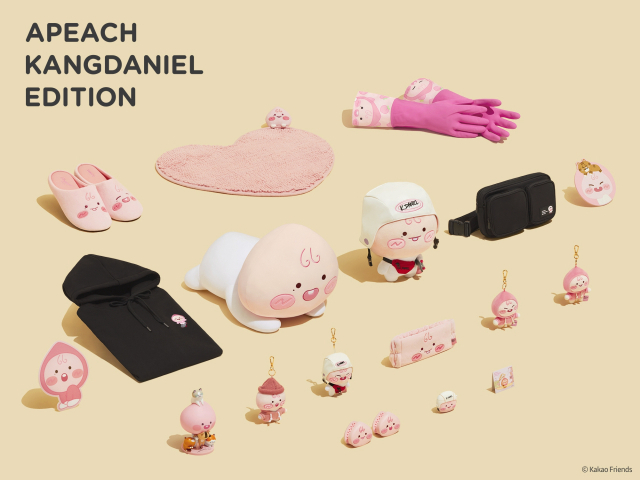 함께 선보이는 '패셔니스타 컬렉션'은 강다니엘이 즐겨 사용하는 패션 아이템으로 구성됐다. 편안한 핏의 블랙후디, 힙색, 마스크 등 어피치를 활용한 매력적인 디자인이 특징이다. 손바닥에 새겨진 강다니엘의 자수 사인이 눈에 띄는 '바디 필로우', 강다니엘의 트레이드 마크인 핑크 후디를 모티브한 '해피·윙크어피치 소프트키링' 등의 상품도 출시된다.