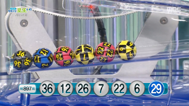 동행복권은 8일 제897회 로또 1등 당첨번호는 '6, 7, 12, 22, 26, 36', 보너스번호는 '29'이라고 밝혔다.