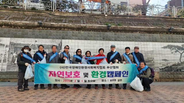 ㈔한국장애인환경사회복지협회 부산협회(회장 김윤정)는 최근 부산 온천천 일대에서 쓰레기를 수거하고 환경캠페인을 벌였다.