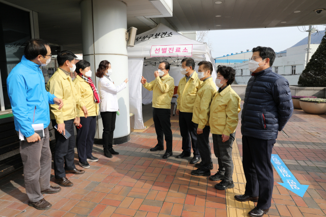 사상구의회(의장 장인수)는 지난 7일 사상구보건소 선별진료소에 방문해 신종 코로나바이러스 감염증 대응체계를 확인하고 비상근무 중인 직원들을 격려했다.