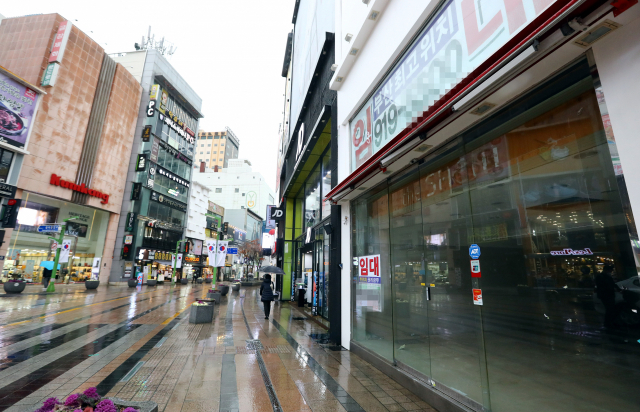 코로나 바이러스 감염증-19 우려 속에 시민들이 극도로 외출을 자제하면서 자영업자를 비롯한 소상공인들의 피해가 커지고 있다. 25일 오후 상가들이 밀집한 부산 중구 광복로 일대 거리가 한산한 모습을 보이고 있다. 정종회 기자 jjh@