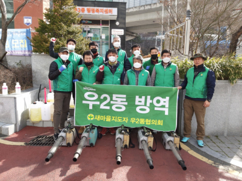 해운대구 우2동 자율방역단(단장 이경후) 20명은 코로나19 감염증 확산 예방과 사태 장기화에 따른 주민의 불안감을 해소하기 위해 지난달 23일부터 주민자치위원회, 바르게살기위원회, 새마을부녀회, 문고, 통장협의회 등 모든 단체와 협력을 통해 자발적으로 방역 활동을 전개해 나가고 있다.