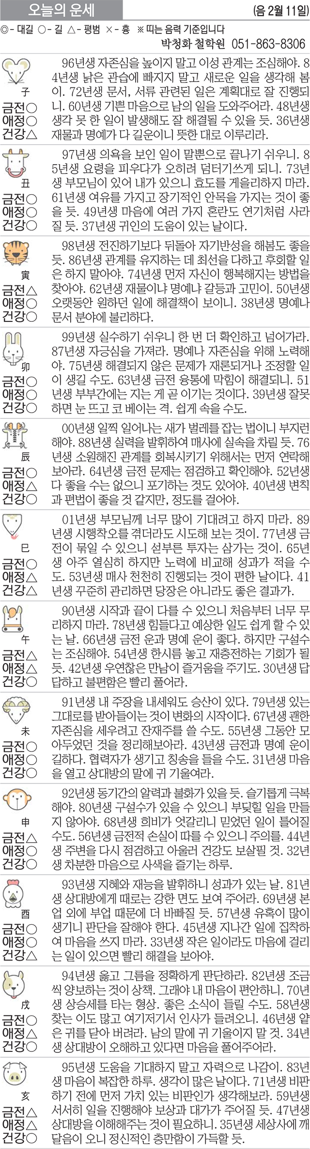 [부산일보 오늘의 운세] 3월 5일 목요일 (음 2월 11일)