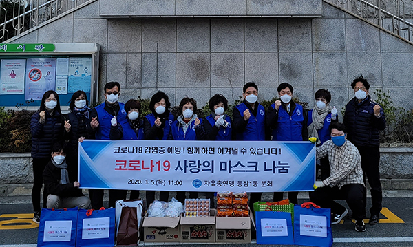 영도구 한국자유총연맹 동삼1동분회(회장 이청자)는 3월 5일 관내 독거노인에게 마스크 등 생활용품을 전달하며 코로나19 예방 홍보에 나섰다.