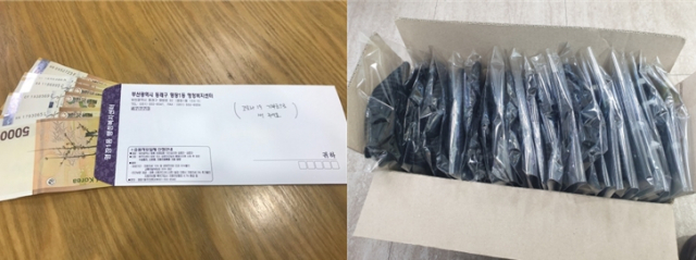 부산 동래구 명장1동(동장 심정원)에 17일 마스크를 쓴 익명의 한 여성이 방문하여“며칠 전 현금이 든 지갑을 잃어버렸는데, 지갑을 발견한 분이 경찰서에 맡겨주셔서 되찾았다. 그 고마운 마음을 사회에 전달하고 싶다.”라며 코로나19 성금으로 써달라며 봉투를 건냈다.