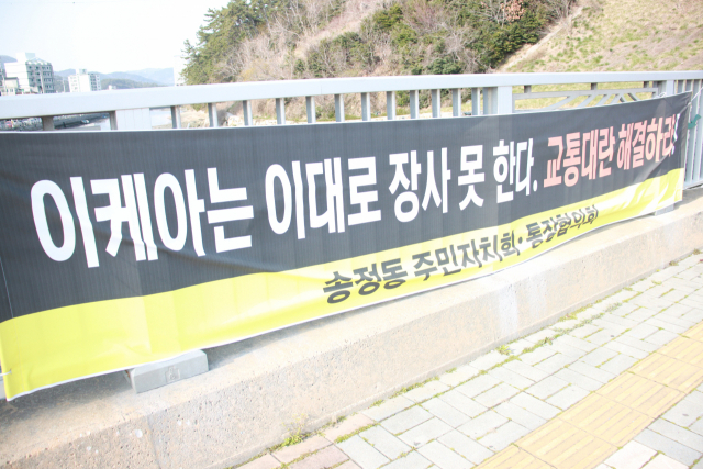 이케아 동부산점의 개점을 앞두고 지역주민들은 “교통 분담금은 부산시와 기장군이 먹고, 교통지옥은 송정동에!” 등의 현수막(사진)을 곳곳에 게시하며 반발하기도 했다. 지역주민의 입장은 현재 도로상황으로는 롯데쇼핑몰의 입주로 인한 차량유입도 소화하지 못하는데 일광신도시와 이케아 동부산점의 입주는 기장해안로를 지옥도로로 만들 것이라는 주장이다. 이에 부산시에서는 기장해안로를 확충하고 도시철도 2호선을 장산역에서 동부산 오시리아역까지 연장 운행하도록 하는 동부산선 계획을 추진한다고 하지만 현실화 여부는 미지수이다.