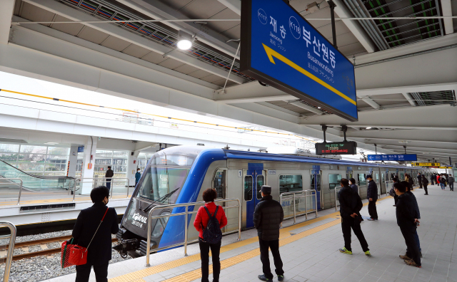 28일 오전 부산원동역에서 시민들이 전철을 이용하고 있다. 정종회 기자 jjh@