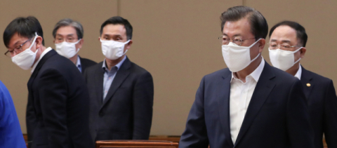 문재인 대통령이 30일 청와대에서 열린 신종 코로나바이러스 감염증(코로나19) 관련 제3차 비상경제회의에 입장하고 있다. 연합뉴스