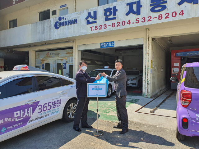 부산 중구 대청동 건강만세365병원(병원장 강성식)이 지난 6일 코로나19로 어려움을 겪는 택시기사들을 응원하기 위해 신한택시 노동조합에 마스크 1000장을 기부했다.