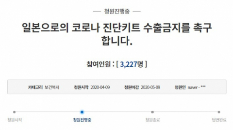 "코로나19 진단키트 일본에 수출 맙시다" 국민청원 잇따라