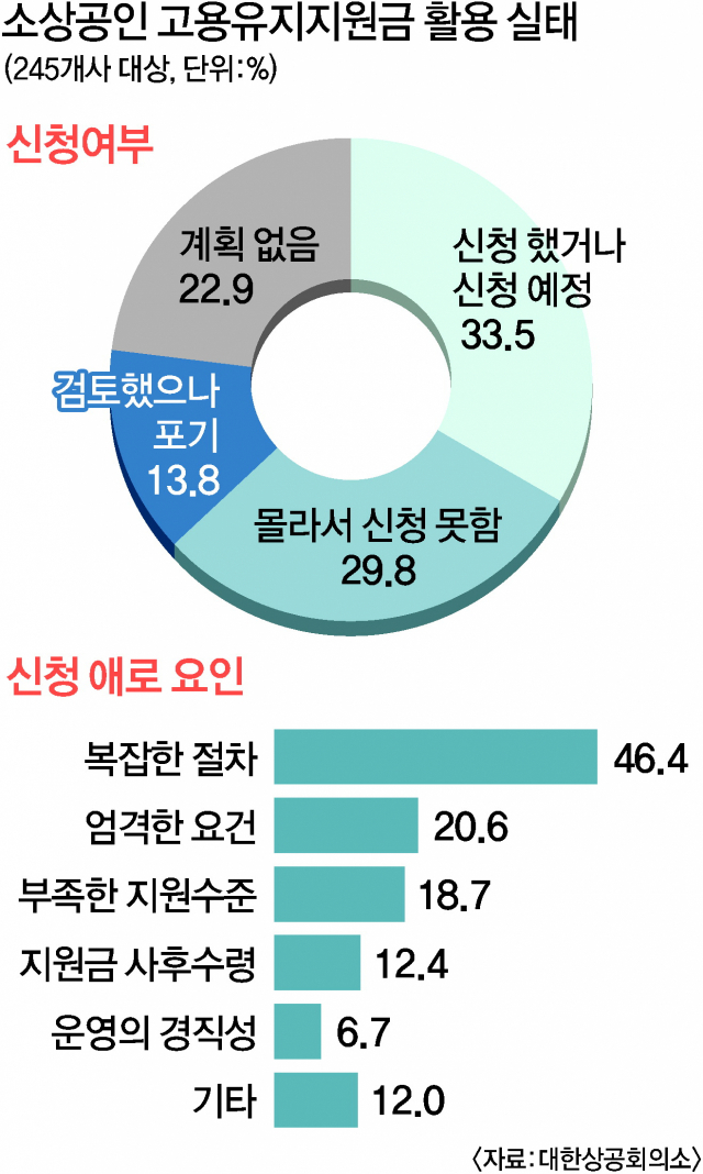 더욱이 그동안 지원 대상에서 제외됐던 영세 자영업자들은 지원 조건이 완화된 사실을 모르는 경우가 허다했다. 해운대구의 한 마트 대표는 “우리처럼 작은 가게도 고용유지지원금 대상인 줄 몰랐다”며 “시나 구청에서 일일이 알려주는 것도 아니고 장사하느라 바빠 각종 지원 대책 정보를 접하기 어렵다”고 전했다.