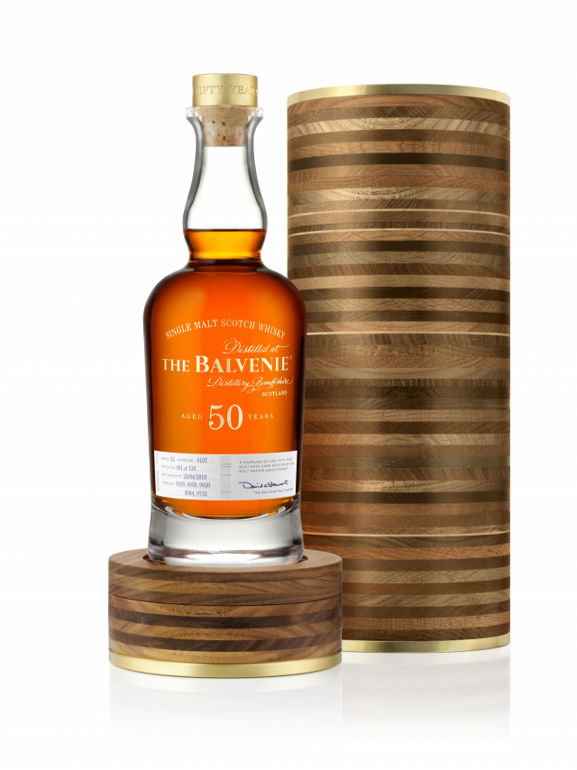 이번 발베니 50년 메리지 0197 케이스에도 스코틀랜드의 목재 장인 샘 치너리(Sam Chinnery)의 손길이 닿았다. 48개의 호두나무 원목과 2개의 황동, 총 50개의 레이어로 이뤄진 원통형 전용 케이스에 담겨 출시됐다. 케이스 내부에는 황동 보증서와 전용 디스플레이도 포함돼 있다.
