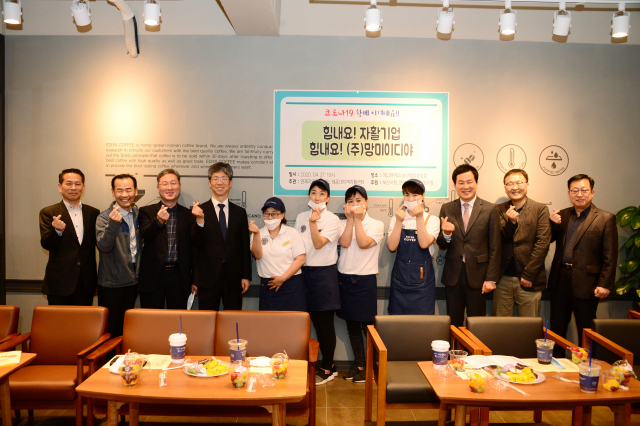 연제구(구청장 이성문)는 27일 부산시 광역자활기업인 카페「망미이디야」를 방문해 코로나19 장기화로 어려움을 겪는 참여자들을 격려했다.