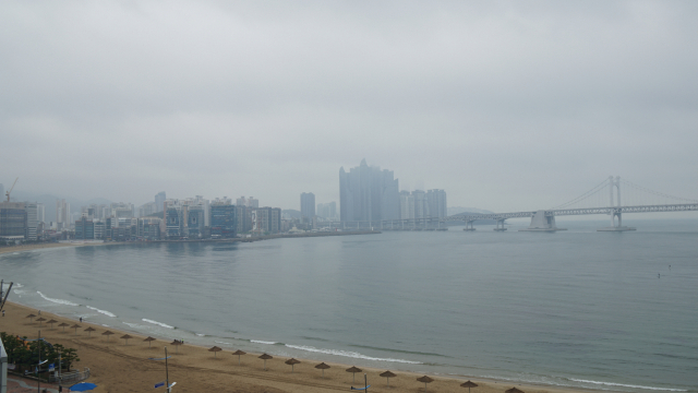 3일 부산지역에 내리는 비로 광안리 해변이 한산한 모습. 촬영 조경건