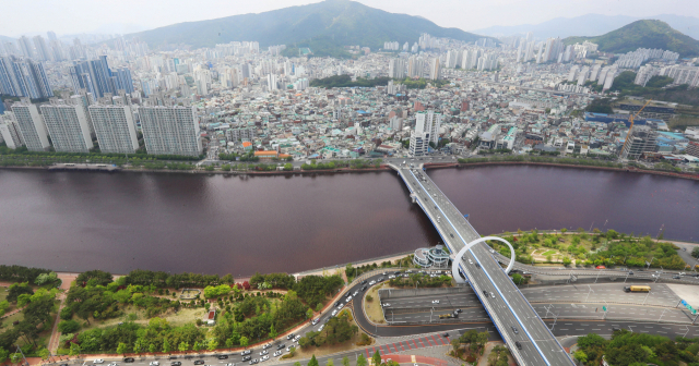부산시보건환경연구원은 “지난 1일부터 현재까지 원동교~수영2호교 사이 수영강 일대에 적조 현상이 발생하고 있다”고 3일 밝혔다. 적조는 식물 플랑크톤(크립토모나스)이 대량 번식하면서 바다나 강이 붉게 변하는 현상을 의미한다. 다행히 3일 오전 비가 오면서 수영강의 적조 현상은 다소 누그러들었다. 물빛도 원래대로 돌아왔다.
