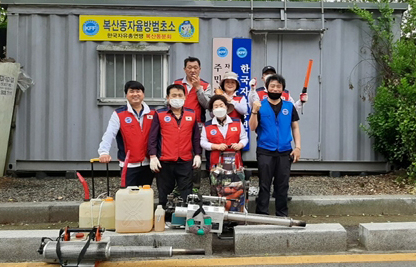 부산 동래구 복산동(동장 강홍구)은 한국자유총연맹 복산동분회(위원장 최영근) 주관으로 10일 코로나19 극복 및 깨끗하고 살기 좋은 마을 조성을 위해 방역활동을 실시하였다.
