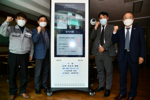 (주)메디올포 정유석 대표는 20일 경남고등학교(교장 정대호)를 방문해 코로나19 사태 등에 유용하게 사용할 수 있는 1500만 원 상당의 ‘셀프 발열체크 가디언 키오스크’를 기증했다. 해당 제품은 30여 명의 발열 상태를 동시에 검사할 수 있으며, 부울경 지역에서 최초로 설치됐다.