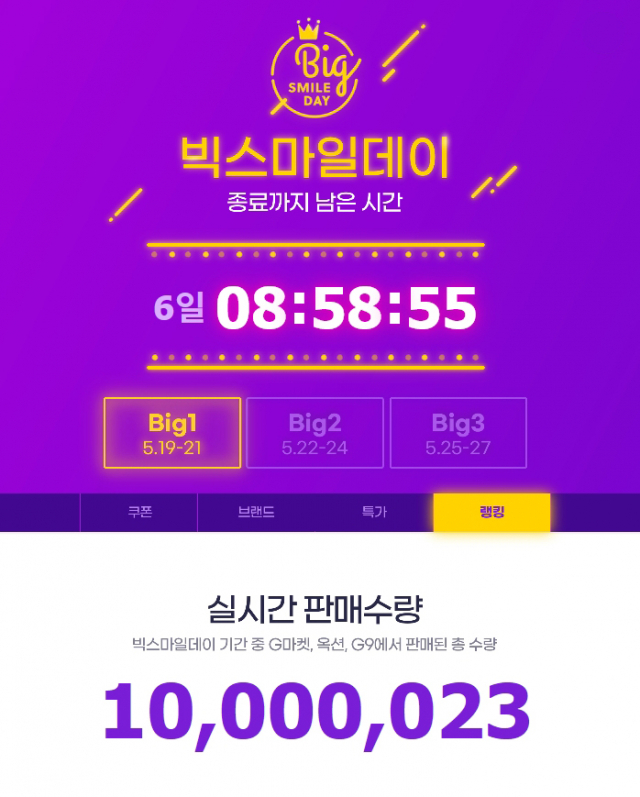 이베이 '빅스마일데이', 최단기간 1000만 개 판매…추가 할인