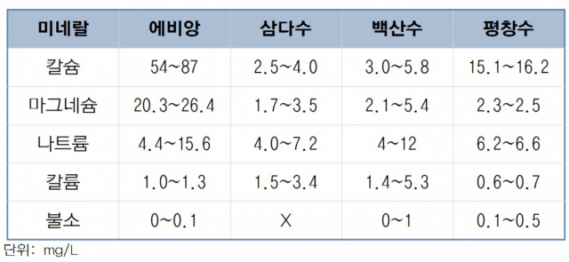 '물 맛'은 미네랄 함량 차이로 다르다.