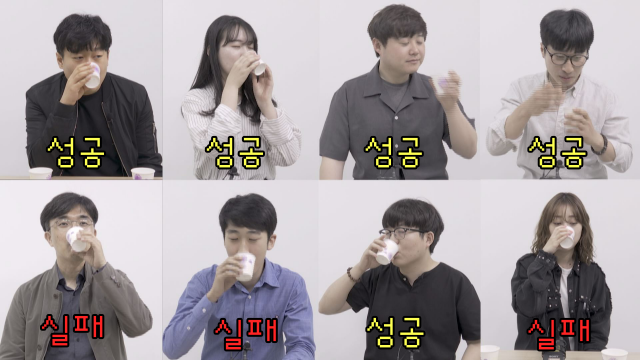 물을 하루 꼬박 상온에 둬 물 온도는 동일합니다. 결과는 5명 성공, 3명 실패!